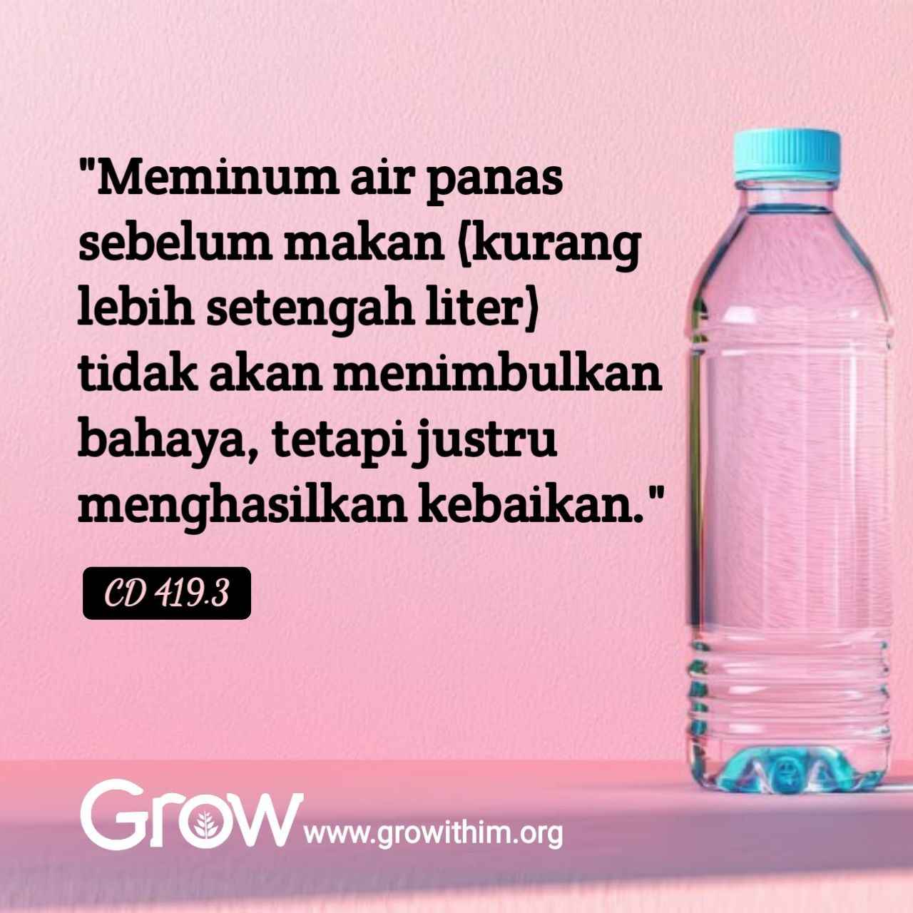 “Meminum air panas sebelum makan (kurang lebih setengah liter) tidak akan menimbulkan bahaya, tetapi justru menghasilkan kebaikan.”