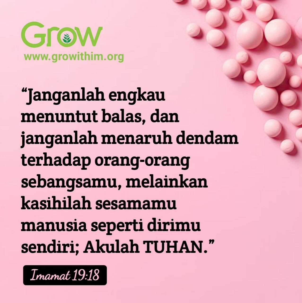 “Janganlah engkau menuntut balas, dan janganlah menaruh dendam terhadap orang-orang sebangsamu, melainkan kasihilah sesamamu manusia seperti dirimu sendiri; Akulah TUHAN.”