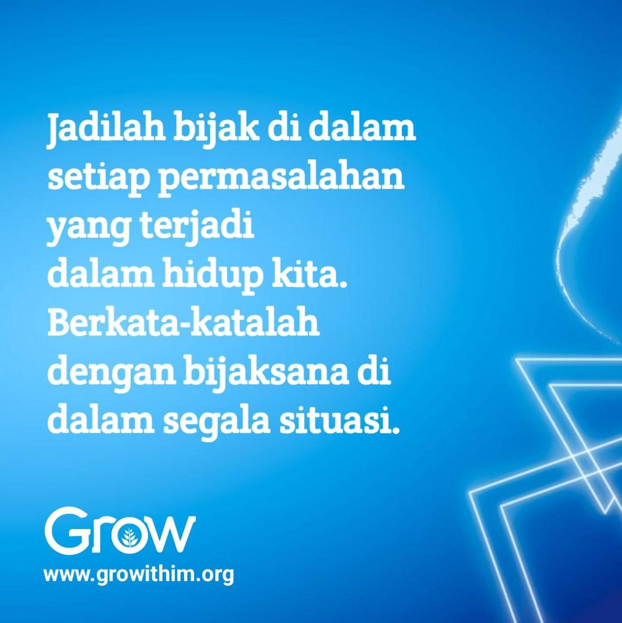 Jadilah bijak di dalam setiap permasalahan yang terjadi dalam hidup kita. Berkata-katalah dengan bijaksana di dalam segala situasi.