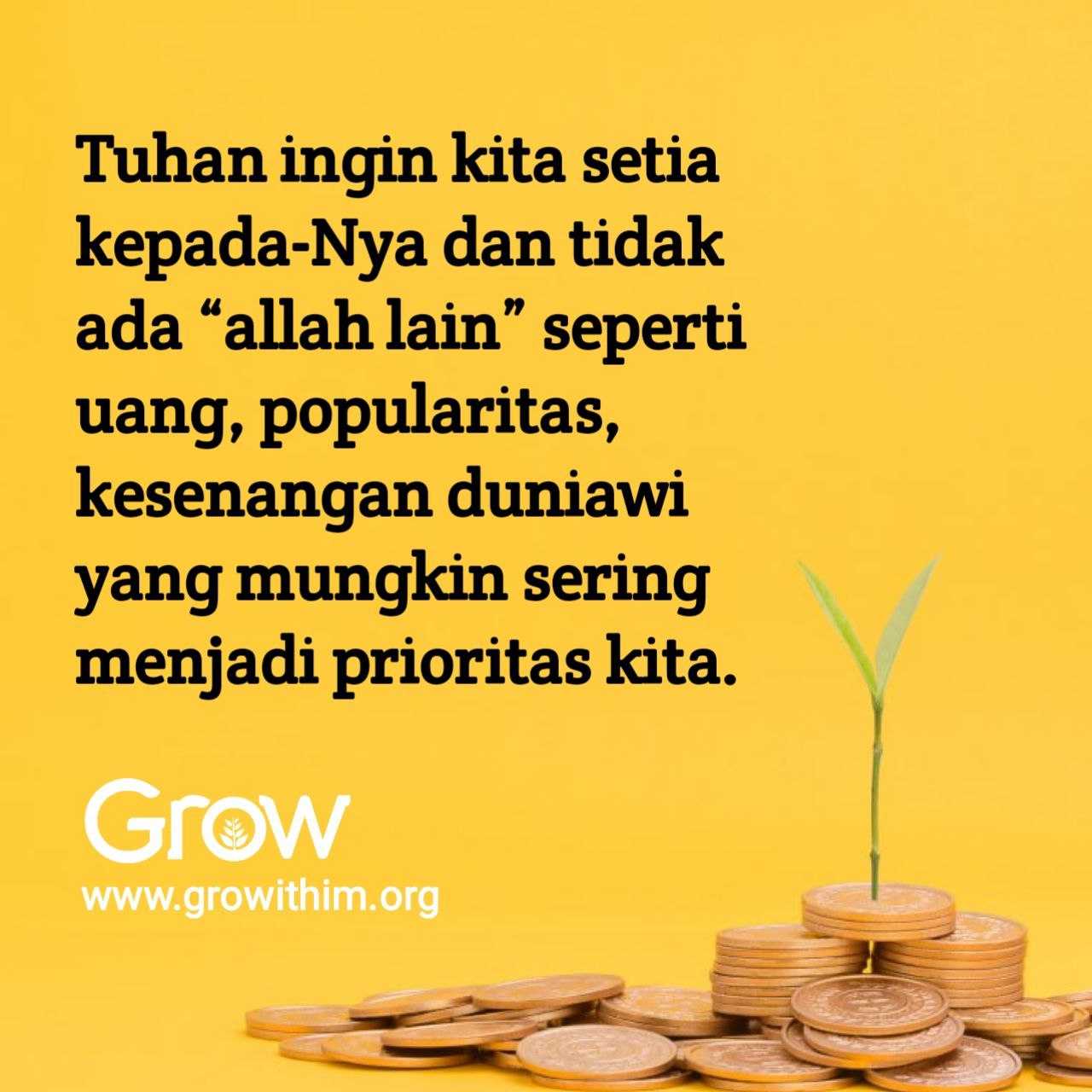 Pertanyaan bagi kita semua, apakah ada “allah lain” yang kita sembah lebih dari Tuhan? Jawablah dalam hati kita masing-masing.