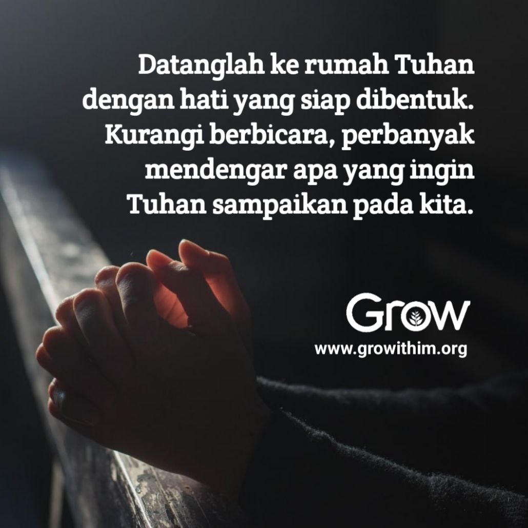 Oleh karena itu, datanglah ke rumah Tuhan dengan hati yang siap dibentuk. Kurangi berbicara, perbanyak mendengar apa yang ingin Tuhan sampaikan pada kita. Dan mulailah ibadah dengan sikap hormat dan penuh dengan kerendahan hati.