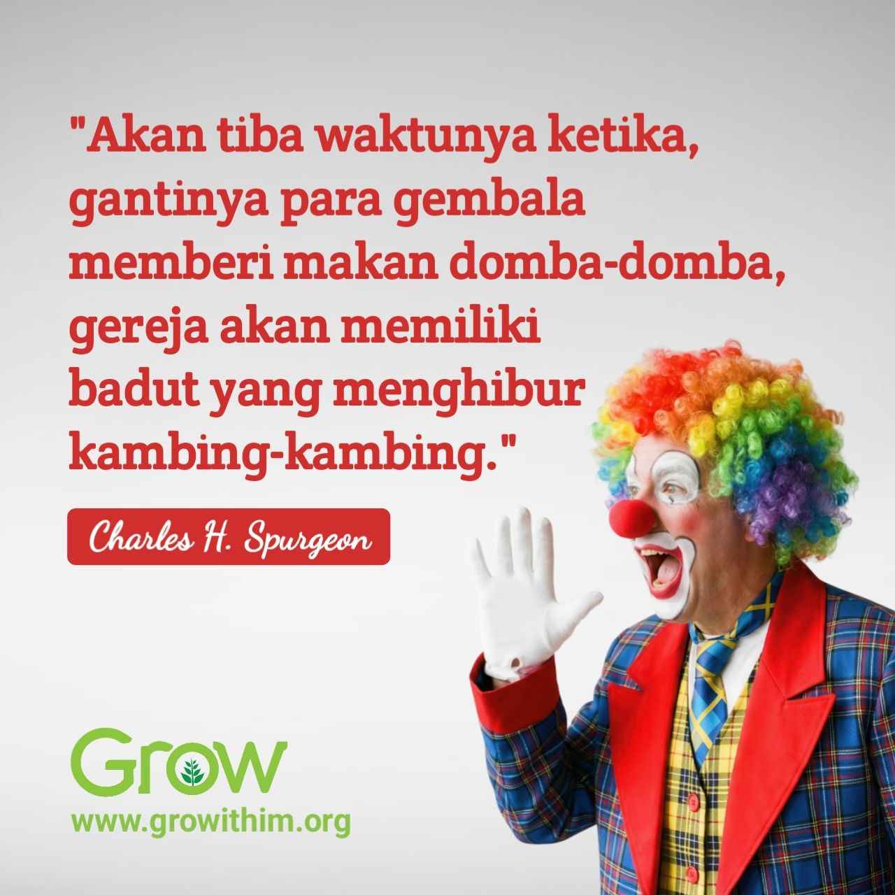 Sehubungan tertawa, teringat sebuah kutipan yang menyatakan “Akan tiba waktunya ketika, gantinya para gembala memberi makan domba-domba, gereja akan memiliki badut yang menghibur kambing-kambing.” (Charles H. Spurgeon)